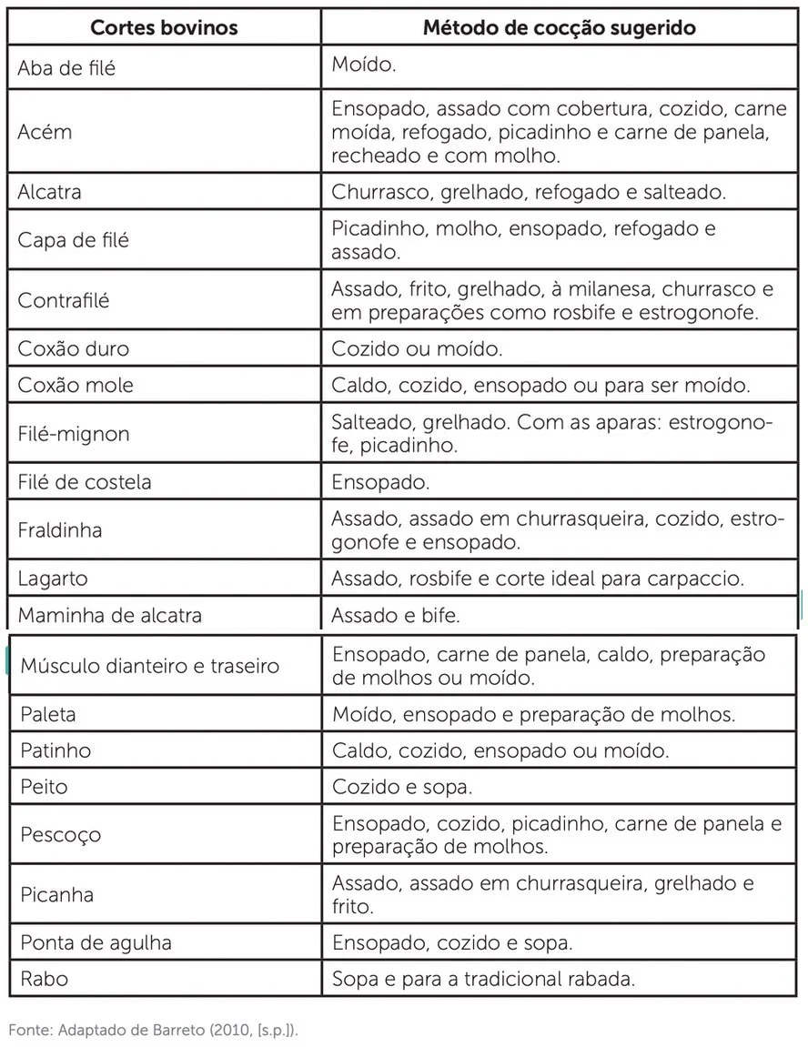 Para saber mais sobre cortes, preparos e receitas indico o livro Gastronomia Aplicada à Nutrição, de Rosiane Figueira.