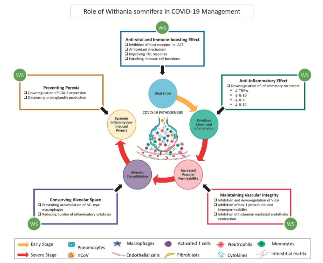 O artigo traz as práticas de yoga (especialmente respiratórios e meditação) como importantes ferramentas para redução da ansiedade e também da função pulmonar. Discute ainda o papel da erva Withania somnifera (Ashwagandha) na imunidade, por seus mecanismos inibidores de receptores para ECA, reguladores da produção de substâncias inflamatórias, contribuindo para redução da vascularidade pulmonar e para a conservação dos espaços alveolares.
