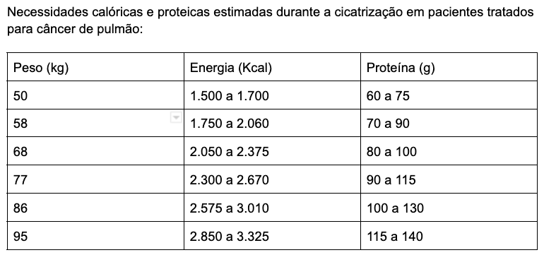 Cada vez que um paciente passa por um procedimento (cirurgia, quimioterapia, imunoterapia ou radioterapia) o corpo responde. Precisa de nutrientes para cicatrização, reparo e cura. As pessoas que recebem tratamento para câncer de pulmão podem precisar de mais energia e proteína do que quando não estavam doentes; esse estado de aumento da demanda por calorias e proteínas é denominado “hipermetabólico”.