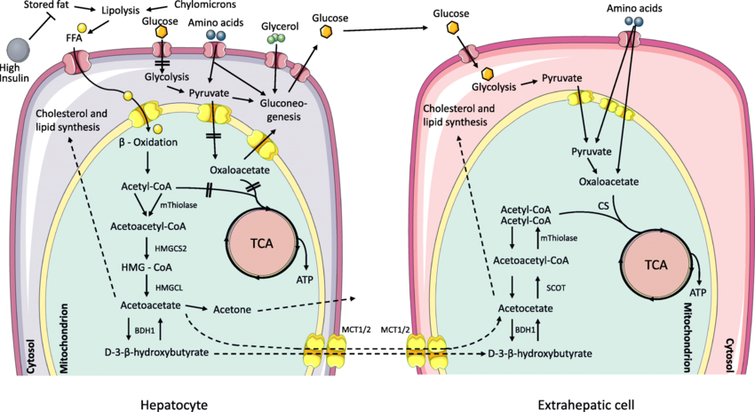 Quando a glicose não está disponível, o corpo recorre à cetogênese para gerar energia. A insulina regula esse processo. Quando os níveis de insulina são baixos, mais ácidos graxos são liberados, aumentando a produção de cetonas. Além disso, hormônios como glucagon, cortisol e hormônios da tireoide também desempenham papéis na regulação da cetogênese.