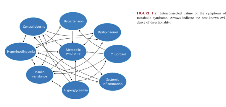A síndrome metabólica inclui cinco condições principais: