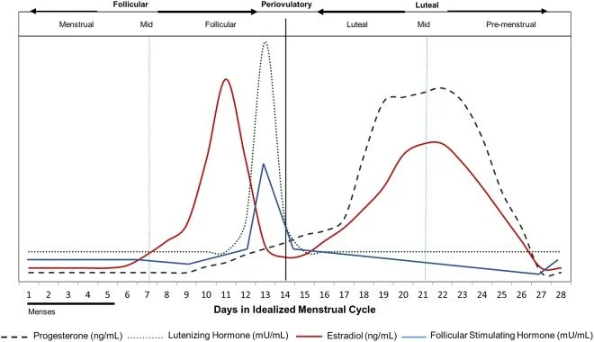 Os níveis hormonais variam de acordo com a fase do ciclo menstrual (Draper et al., 2018)