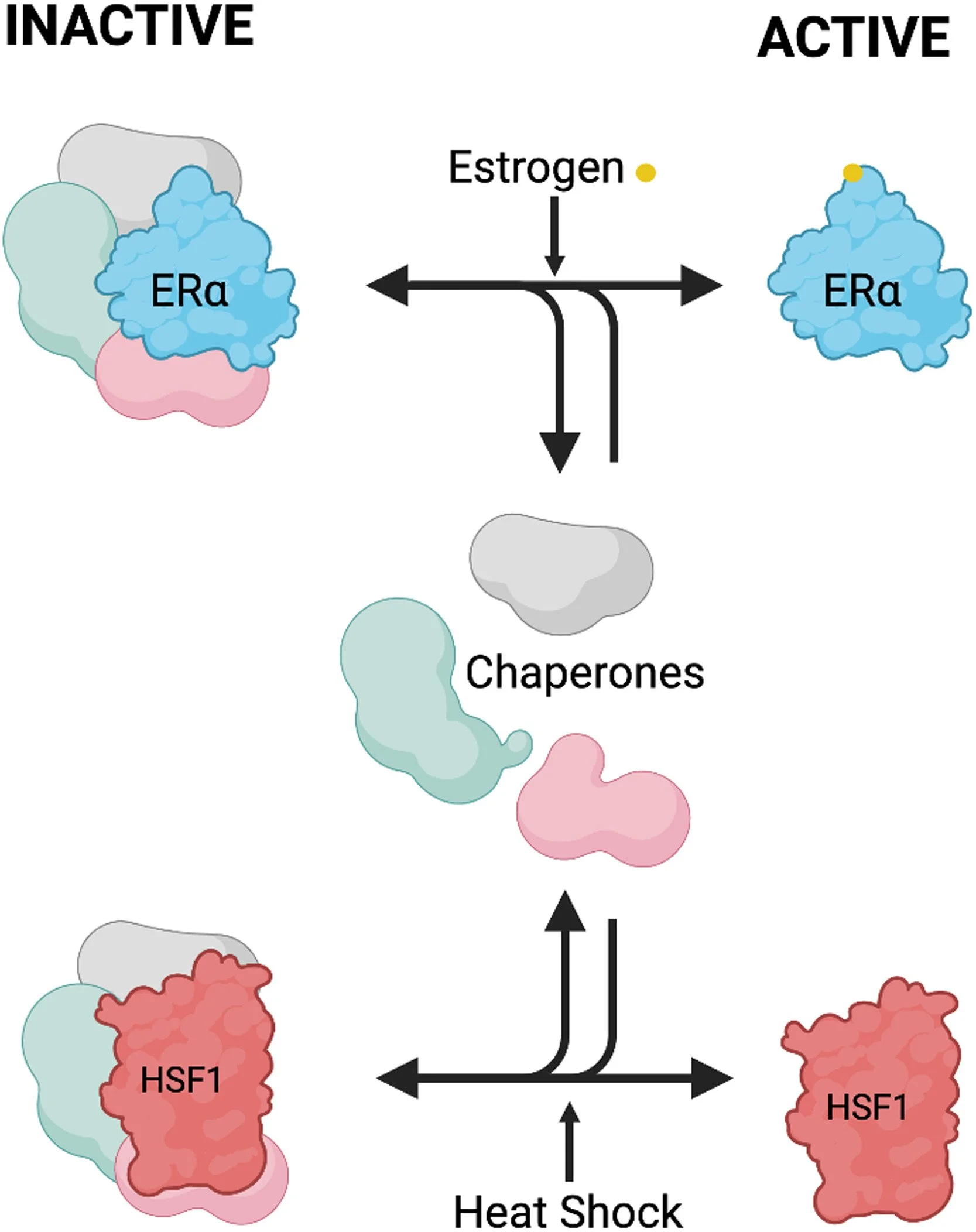 Na menopausada, o estímulo do HSP70 é mais difícil. A redução da sensibilidade ao estresse celular na menopausa decorre principalmente da queda estrogênica. O estrogênio atua como modulador direto e indireto da expressão de HSP70. Sem ele, há atenuação das vias de sinalização que ativam HSF1, que é o fator de transcrição responsável por induzir HSP70. A menor disponibilidade de estrogênio reduz fosforilações necessárias para a trimerização e a ligação eficiente de HSF1 ao DNA.
