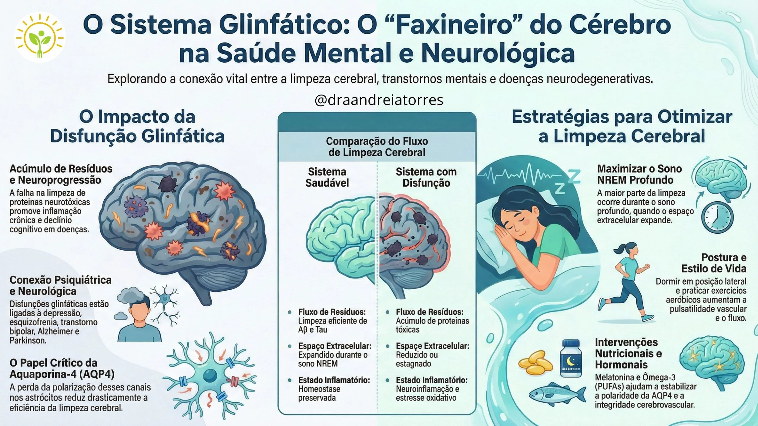 O sistema glinfático remove resíduos neurotóxicos (como o β-amiloide) principalmente durante o sono profundo.