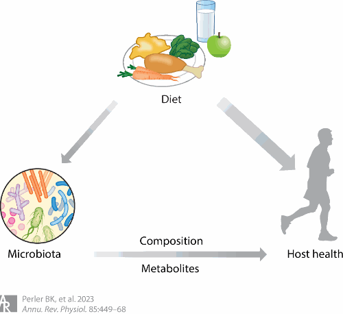 A microbiota age como um fator ambiental importante, interagindo com nutrientes da dieta para gerar metabólitos (como AGCC, ácidos biliares secundários e aminas) que modulam diretamente a saúde do hospedeiro . Esses metabólitos influenciam: