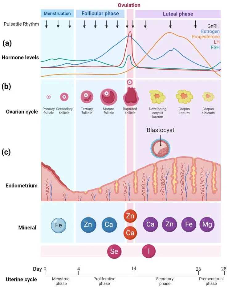 A nutrição é fundamental para a saúde da mulher e para a fertilidade. Por exemplo, a insuficiência de minerais essenciais como ferro, zinco, cálcio, magnésio, selênio e iodo está associada a alterações hormonais, disfunção ovulatória, resposta endometrial subótima e consequente redução da fecundidade.