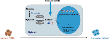 Esse lactato atua como precursor de grupos lactil (lactil-CoA ou vias intermediárias como lactoilglutationa).
