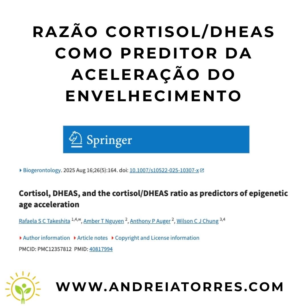 Uma razão maior (mais cortisol em relação ao DHEAS) indica maior exposição ao estresse crônico, desgaste celular e aceleração do envelhecimento.