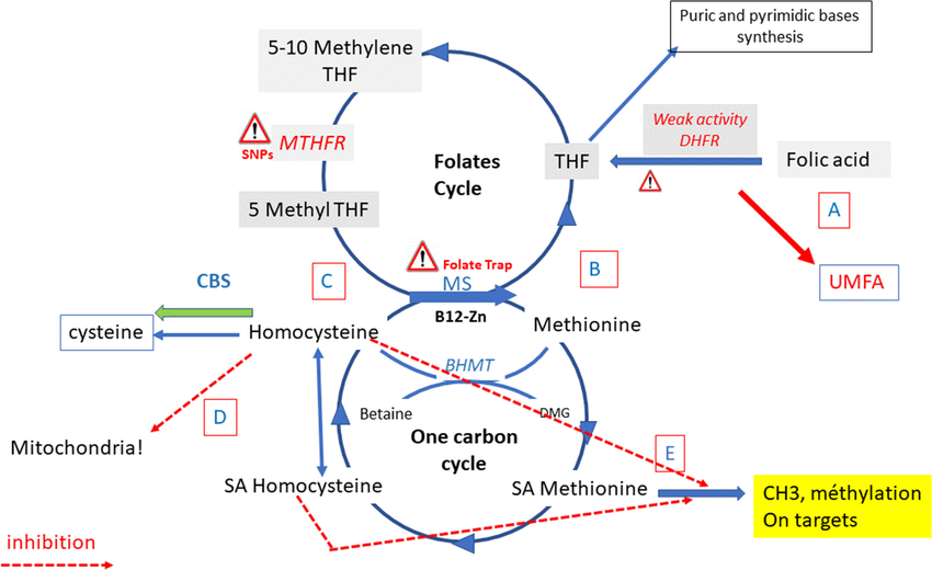 Esse mecanismo ainda é hipotético, mas alguns estudos sugerem que excesso de ácido fólico sintético pode ser menos eficiente para o cérebro do que suplementar diretamente L-metilfolato (que atravessa mais facilmente a barreira hematoencefálica).